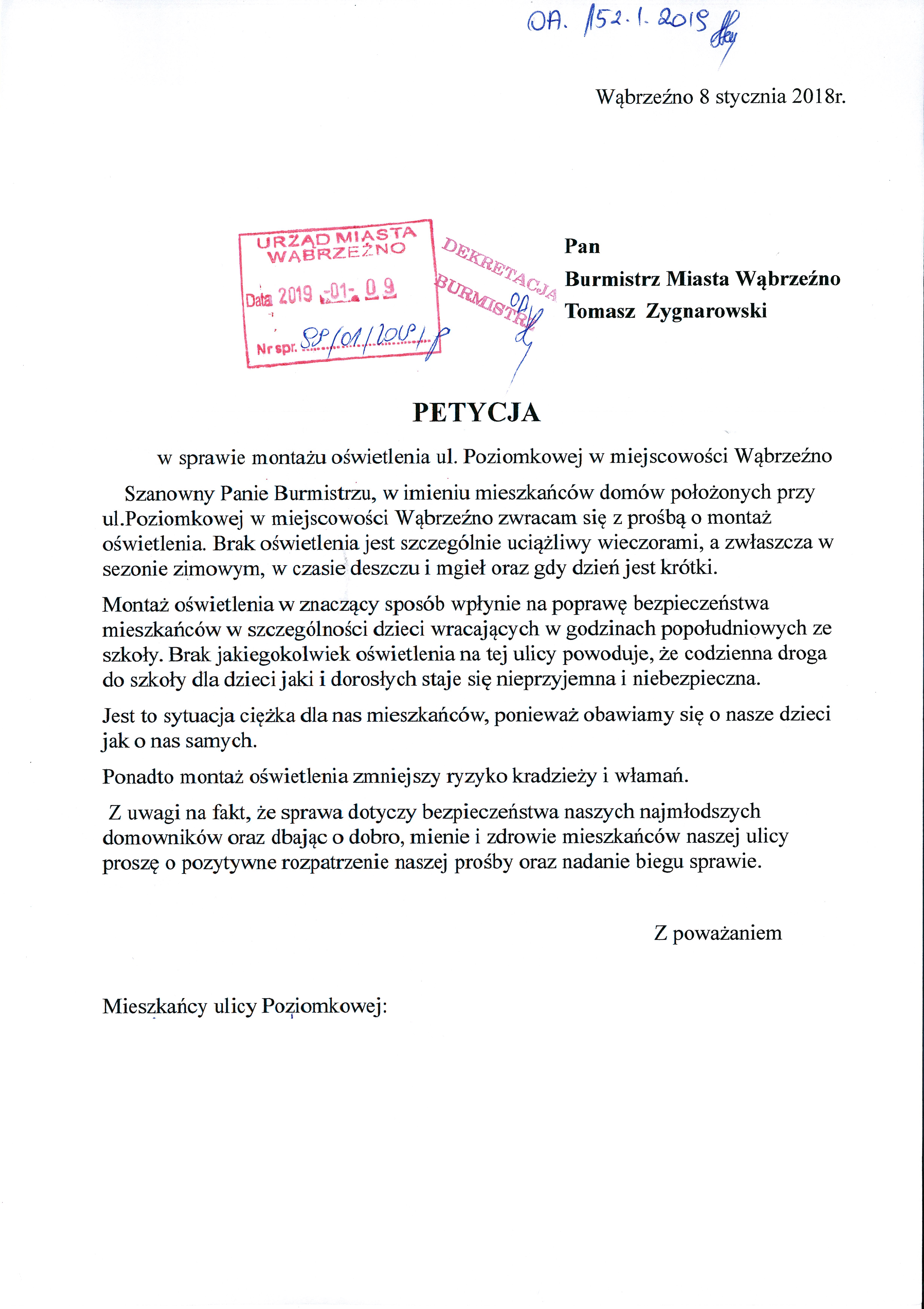 | utworzono: | data: 09:42, 14.01.2019 | przez: Łukasz Cieślak | Petycja - montaż oświetlenia ul. Poziomkowej |